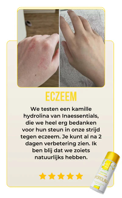 In slechts vier jaar tijd is Kamillewater Hydrolina uitgegroeid tot een favoriete oplossing voor eczeem, met meer dan 100.000 flessen wereldwijd geleverd. De trots die we nemen in ons lage retourpercentage (minder dan 1%) bevestigt onze toewijding aan kwaliteit en klanttevredenheid.