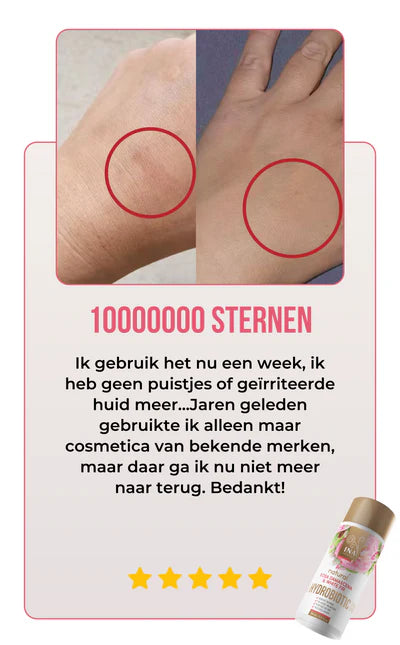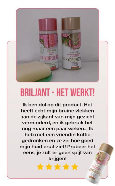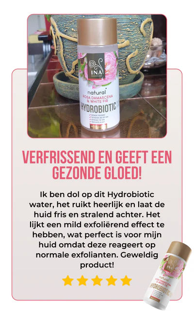 Hydrobiotic - Roos, Zilverspar en Citroenschil is meer dan alleen een prachtig flesje, het wordt versterkt door echte getuigenissen van klanten. Met een indrukwekkende klanttevredenheidsscore van meer dan 90% toont ons product zijn efficiëntie in het verminderen van fijne lijntjes en pigmentvlekken. Geloof ons niet alleen op ons woord. Lees HIER de verhalen van onze klanten.